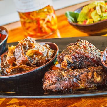 Our menu features a variety of Caribbean classics, including jerk chicken, oxtail stew, and seafood gumbo. We also offer vegetarian and vegan options, such as our plantain curry and lentil soup. All of our dishes are made from scratch using traditional Caribbean spices and cooking techniques.